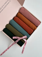 BOX SIX HIJABS SOIE DE MÈDINE offre une variété de couleurs et de modèles. Chaque hijab est de qualité supérieure et fait à la main avec une soie de mèdine douce et fluide qui préserve la température corporelle et aide à réguler la transpiration. La fabrication à la main et l'utilisation de matériaux de qualité offrent une longévité et une durabilité exceptionnelles.
