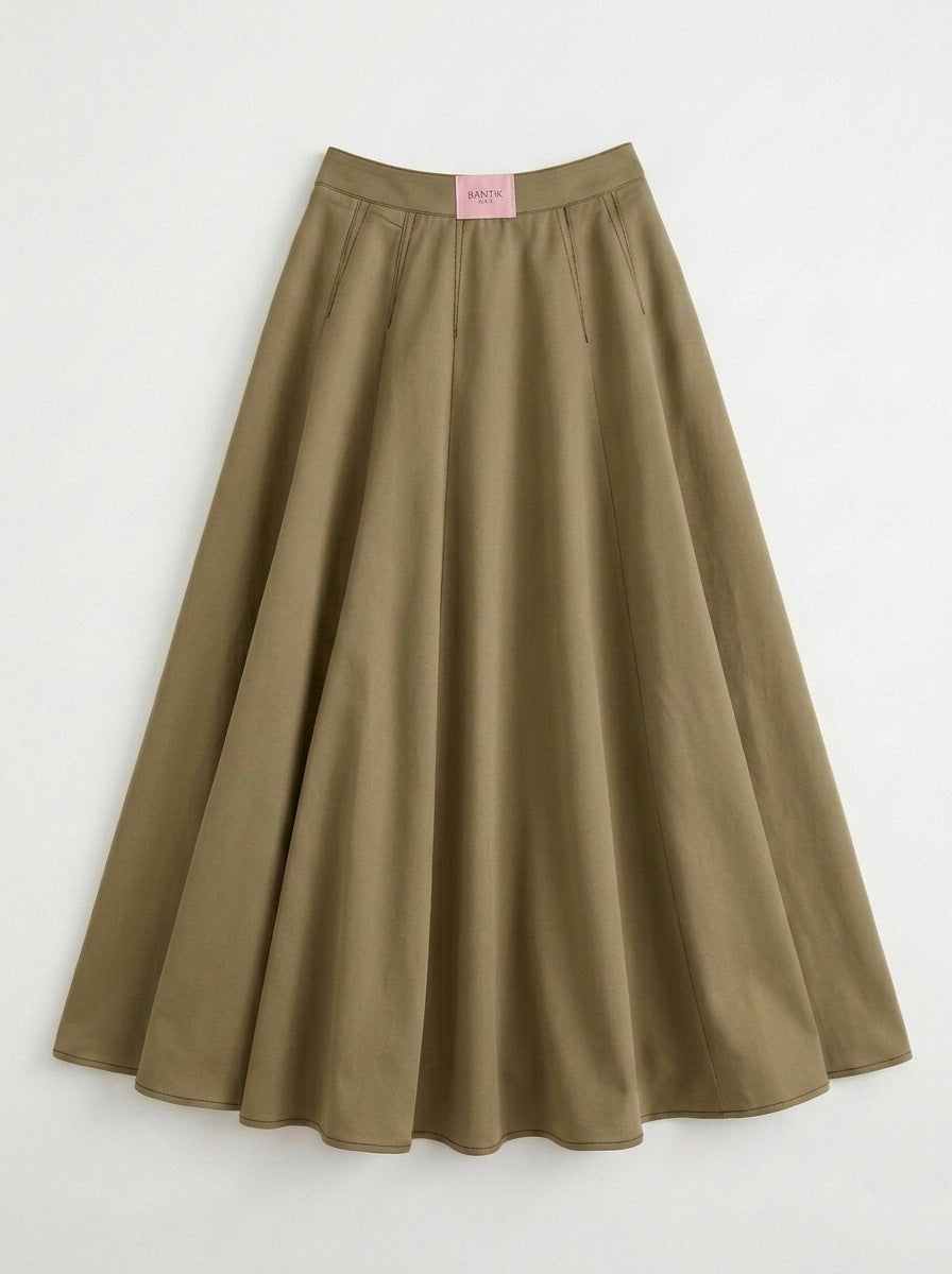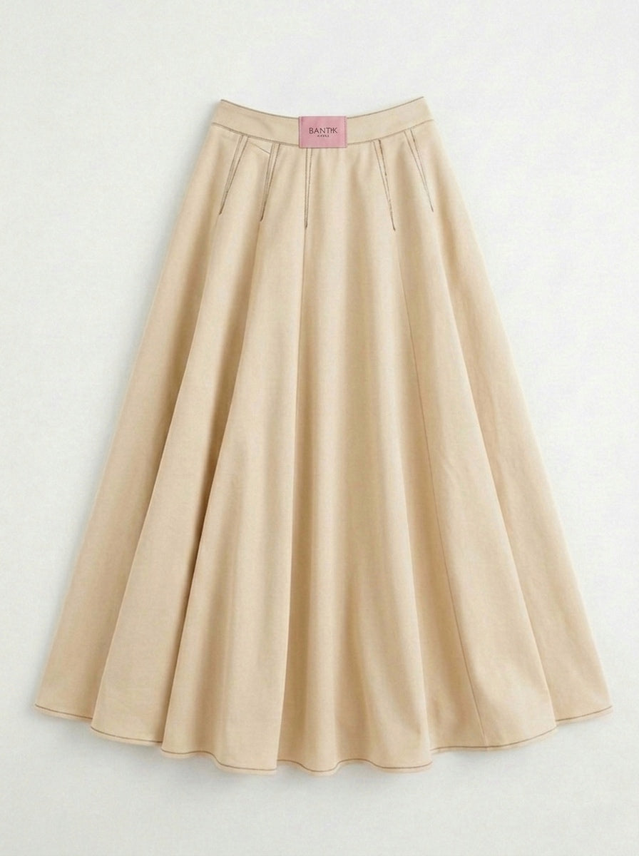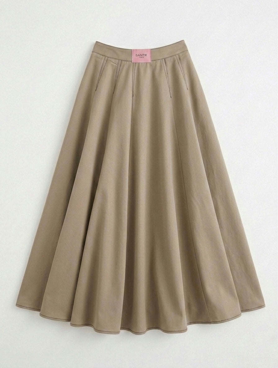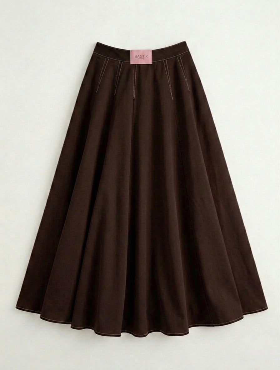 Coupe : Évasée avec détails de surpiqûres verticales pour structurer la silhouette.