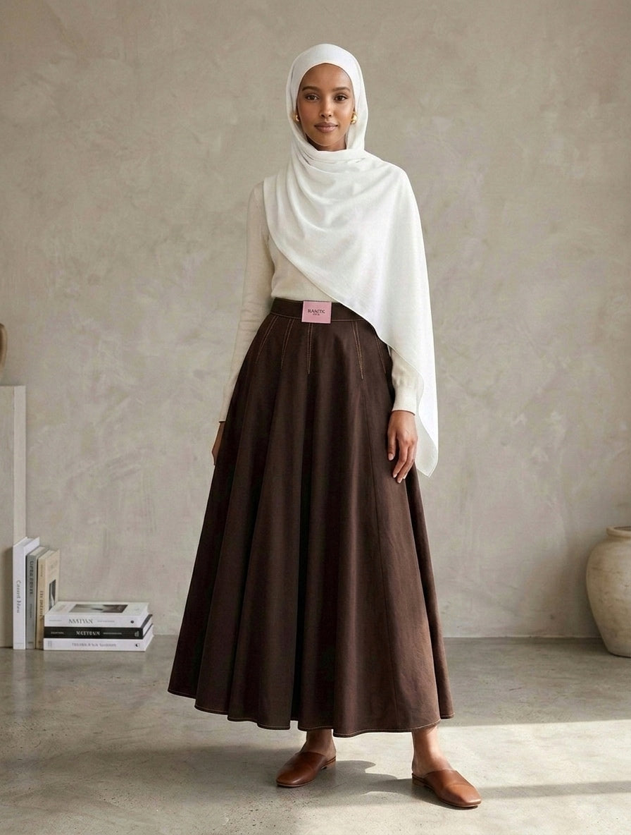 Apportez une touche de sophistication intemporelle à votre garde-robe avec cette magnifique jupe longue évasée. Sa coupe trapèze flatteuse et son tombé fluide en font une pièce polyvalente, idéale aussi bien pour une tenue de bureau chic que pour une sortie décontractée en ville.