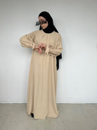 Robe originale avec coutures au niveau de la taille et de la poitrine. Un lacet à nouer dans le dos permet de resserer la taille, si on le souhaite ! Matière type lin doux.