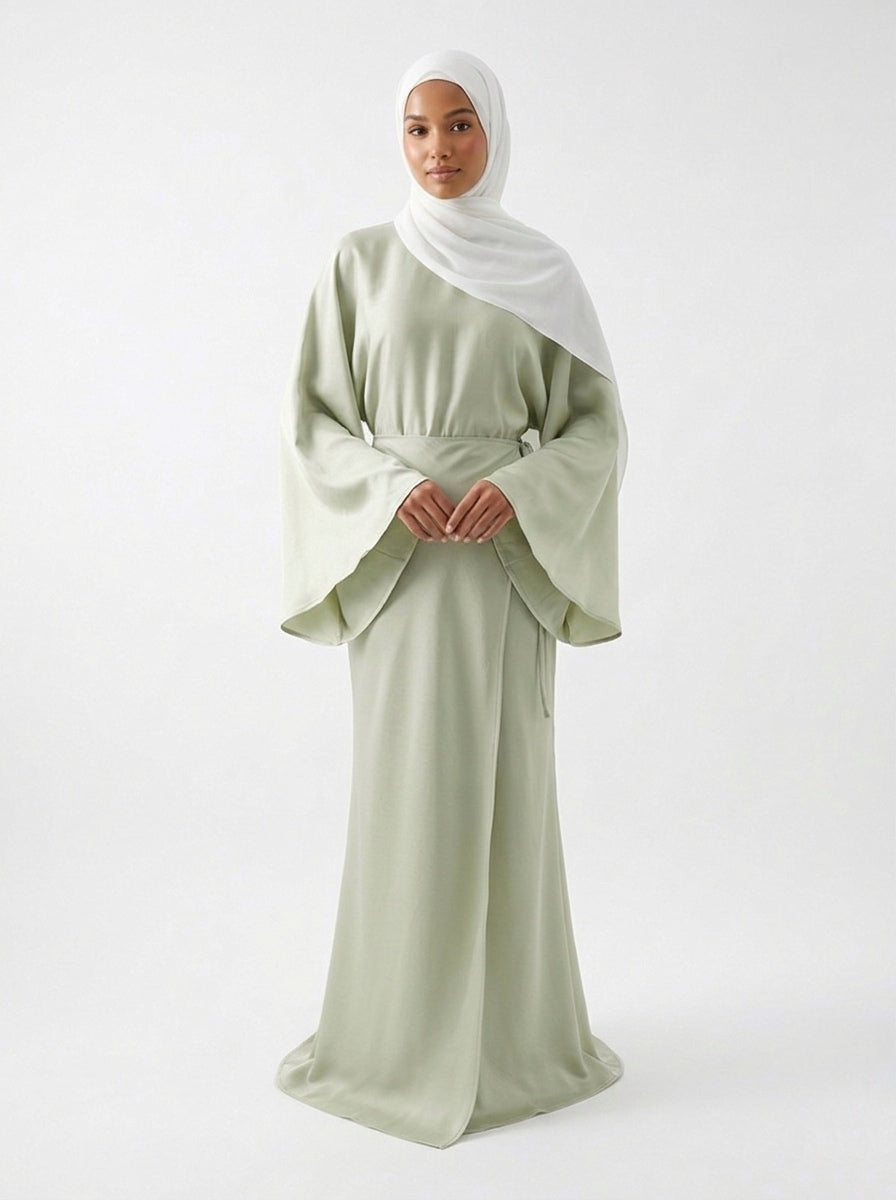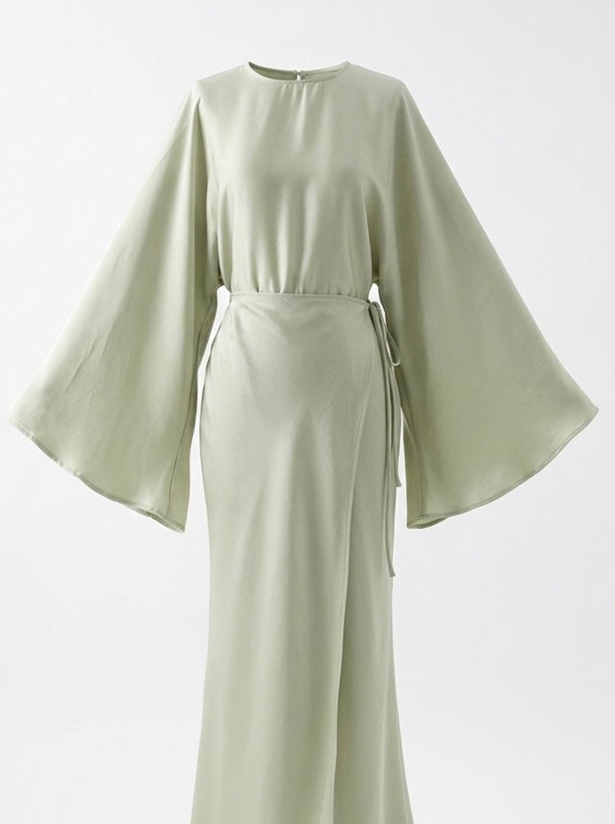 Manches : Longues manches évasées de style « chauve-souris », apportant de la légèreté et un mouvement aérien à chaque geste.