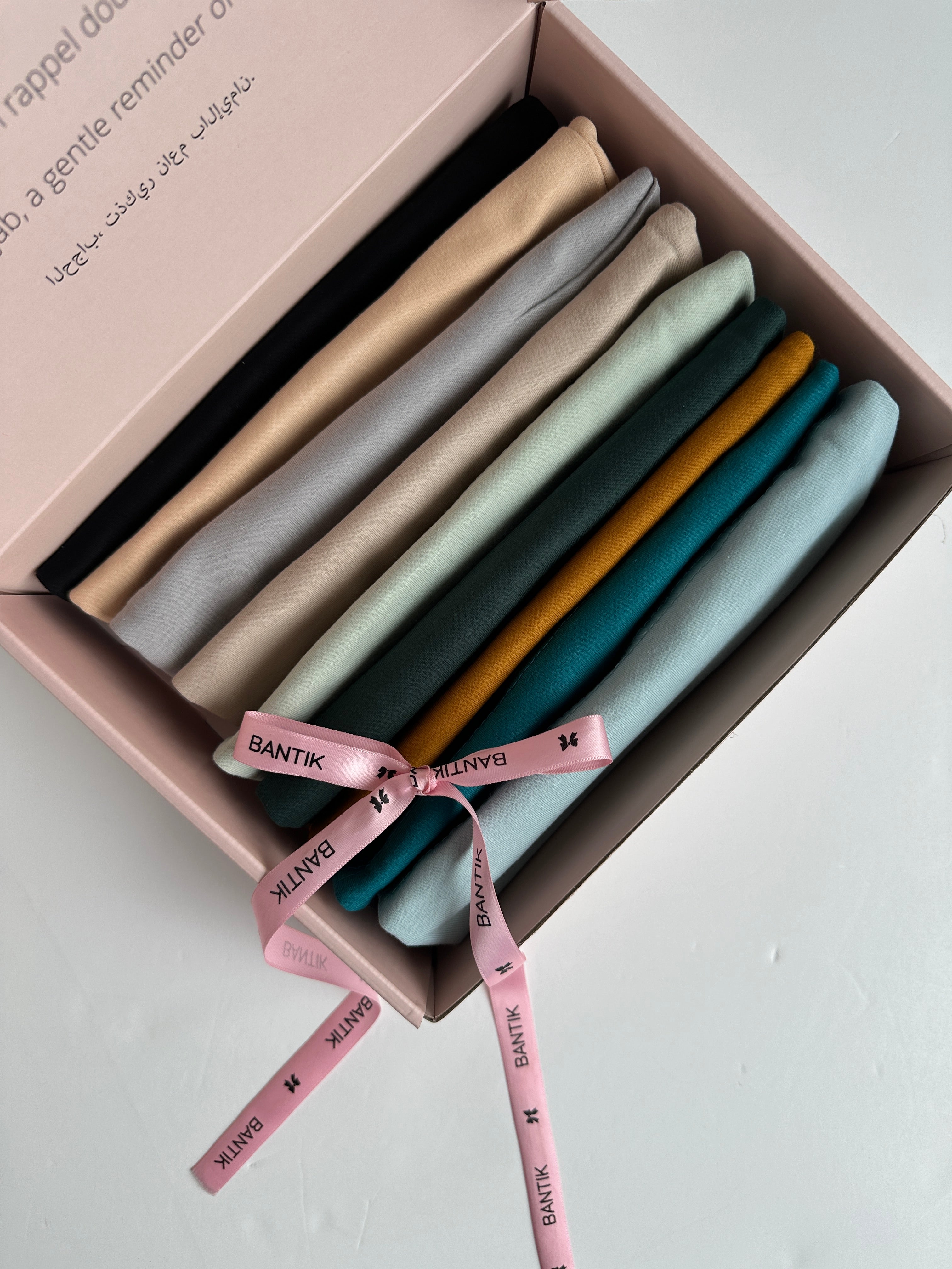 Découvrez notre box composée de 9 bonnets fermés, pensés pour accompagner vos hijabs avec discrétion et maintien tout au long de la journée.