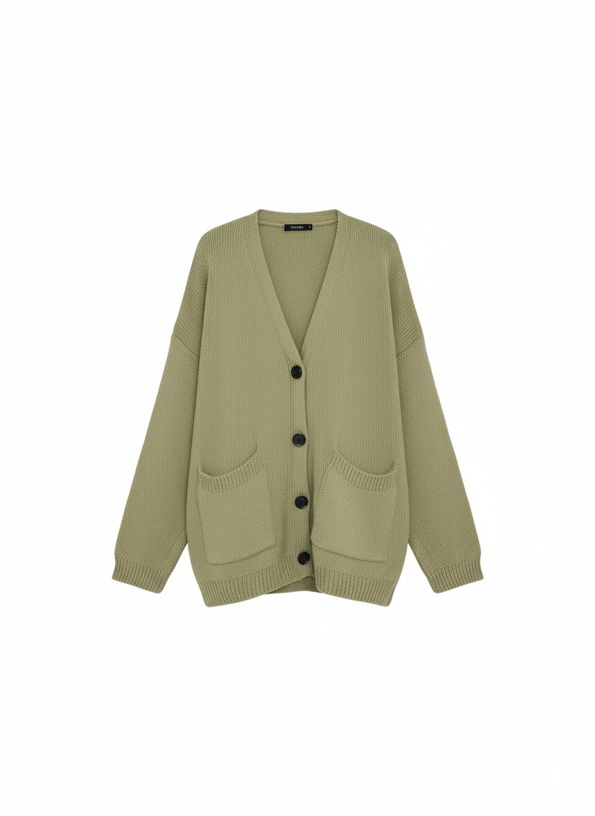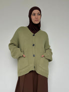 Un cardigan doux et confortable au style minimaliste. Sa coupe oversize et ses manches tombantes apportent une allure moderne et décontractée. Idéal pour la mi-saison, à porter sur une robe, un top ou une abaya pour un look élégant et cosy.