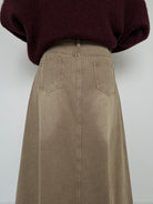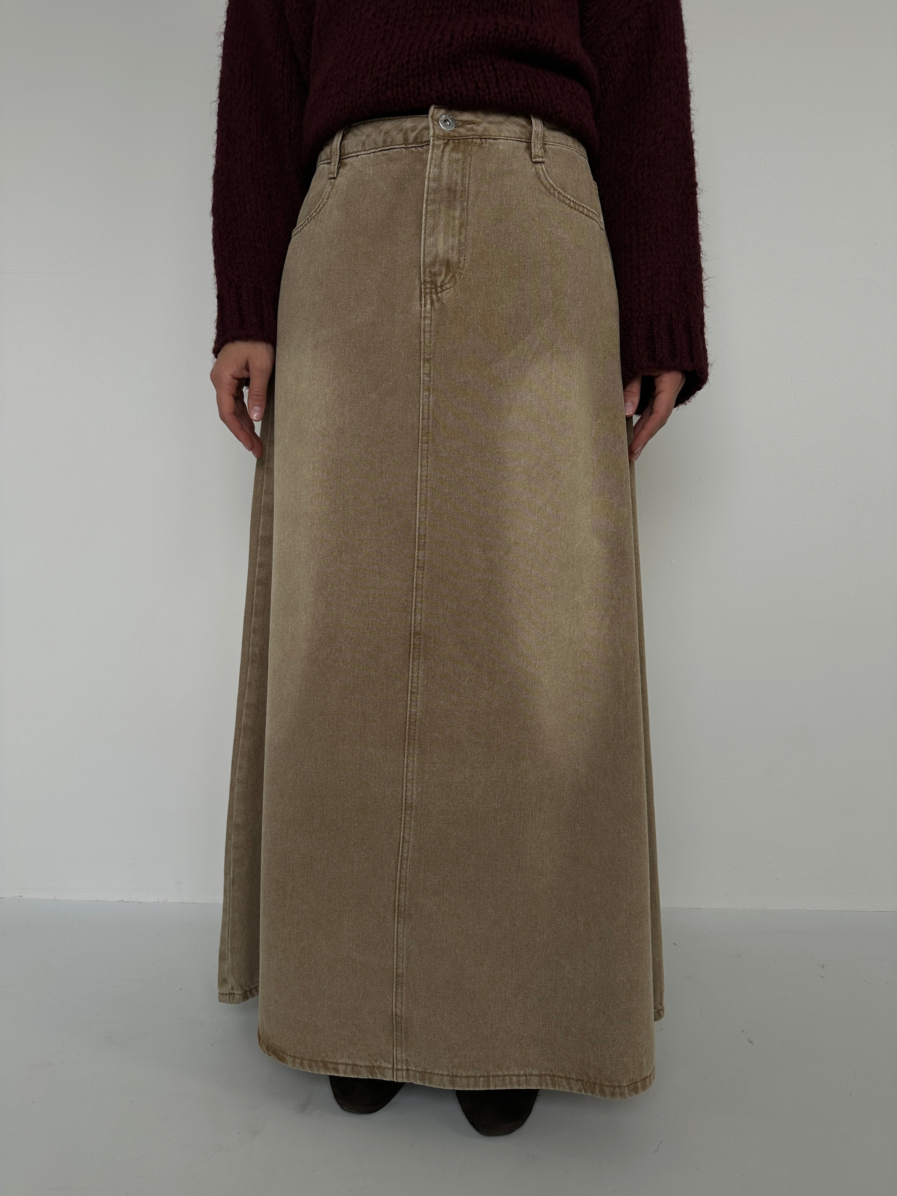Cette jupe longue en jean allie confort et style, parfaite pour un look casual ou chic selon les accessoires.