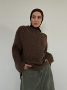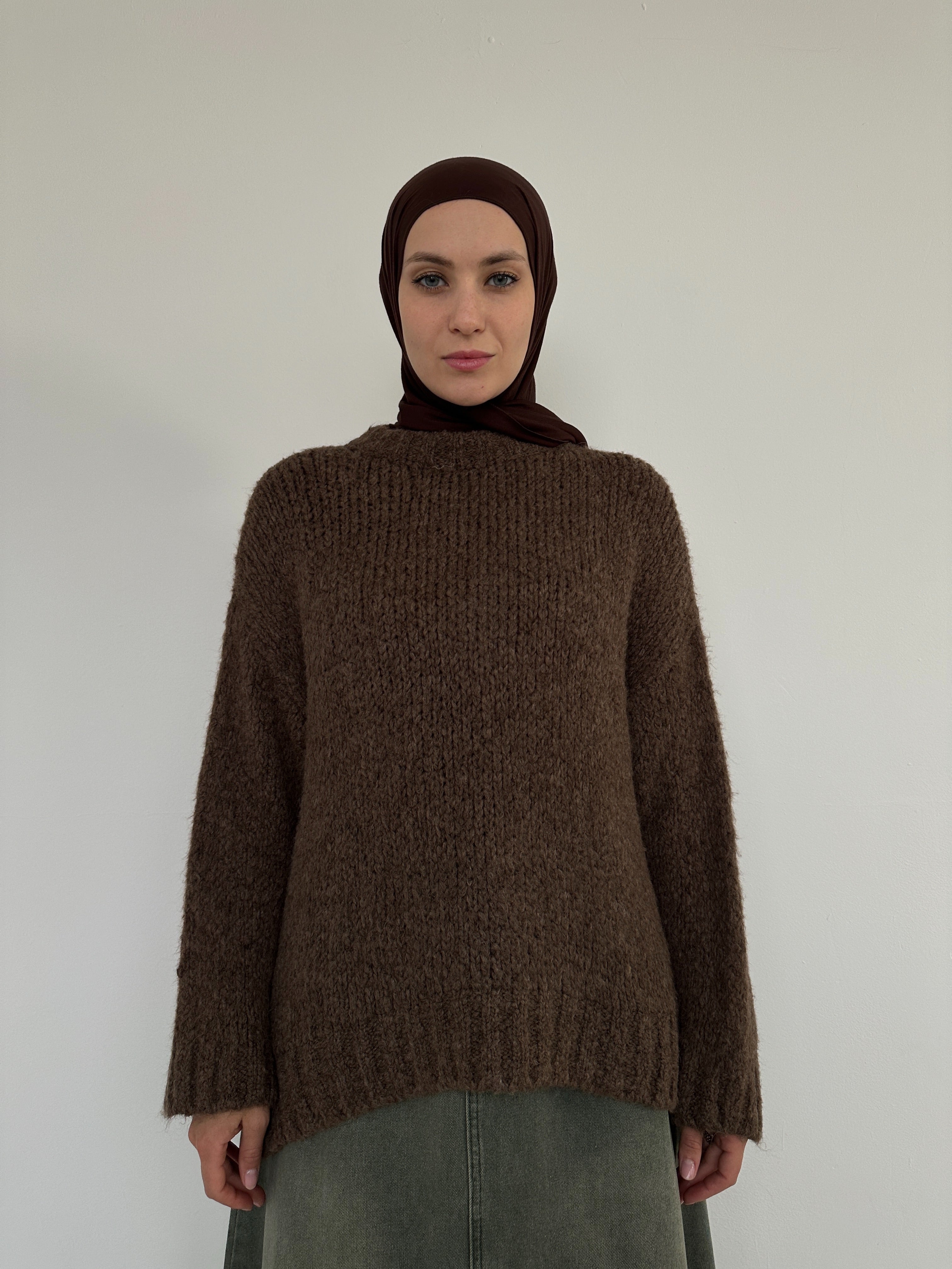 Un pull élégant et confortable, parfait pour les journées fraîches. Sa coupe légèrement asymétrique (67 cm à l’avant, 74 cm à l’arrière) apporte une touche moderne et décontractée. Facile à associer avec un pantalon large, une jupe fluide ou un manteau.