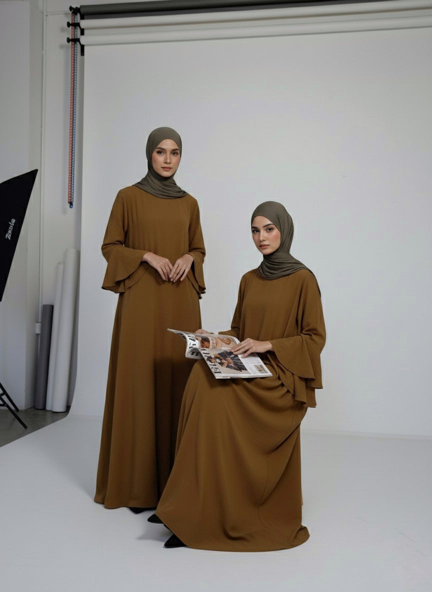 Cette robe longue en tissu Jazz offre une fluidité remarquable et un confort optimal grâce à son mélange de polyester et d'élasthanne. Ses manches à volants structurées apportent une touche de sophistication. Parfaite pour un style Modest Fashion ou une élégance décontractée.