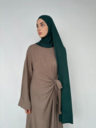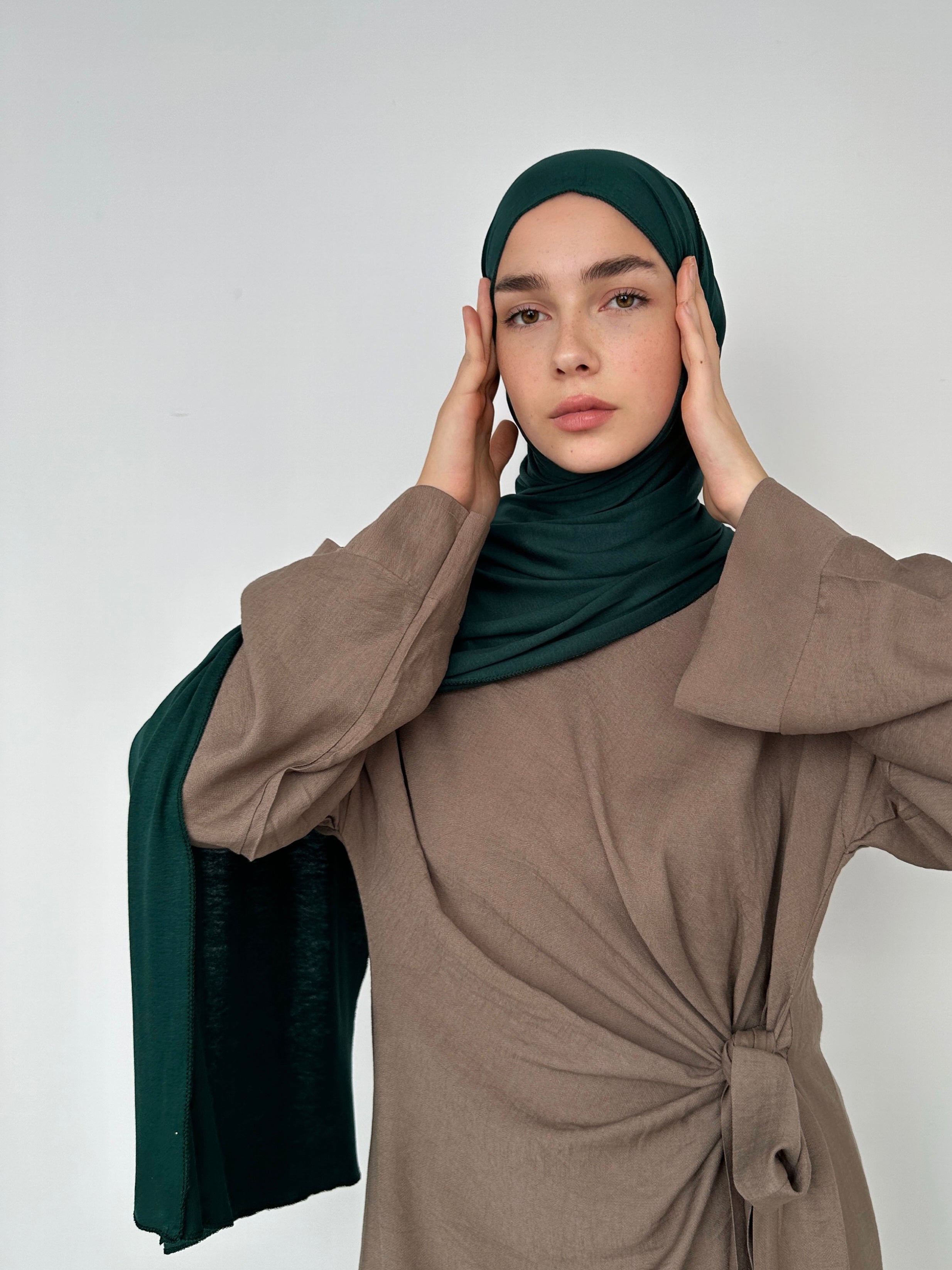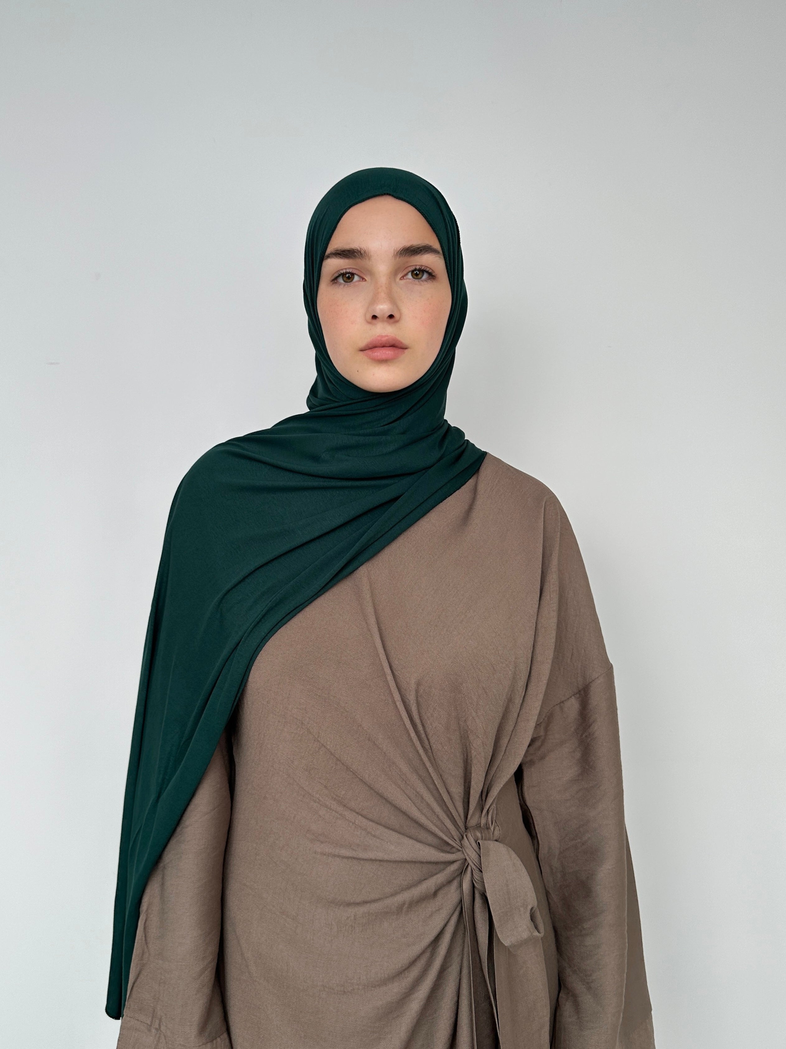 - Le jersey est idéal pour ce type de hijab en raison de sa douceur, de son élasticité et de sa capacité à bien tenir en place sans nécessiter de broches ou d'épingles supplémentaires.