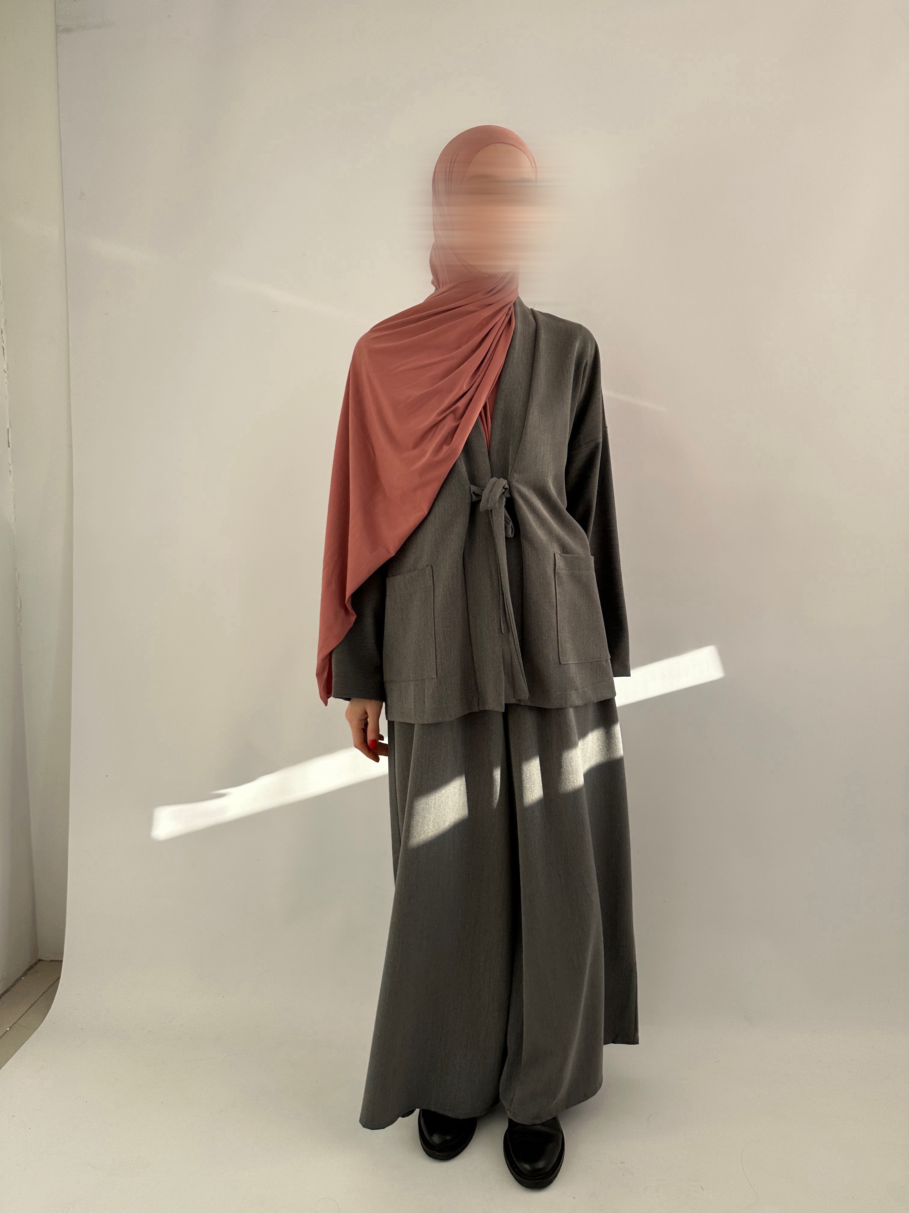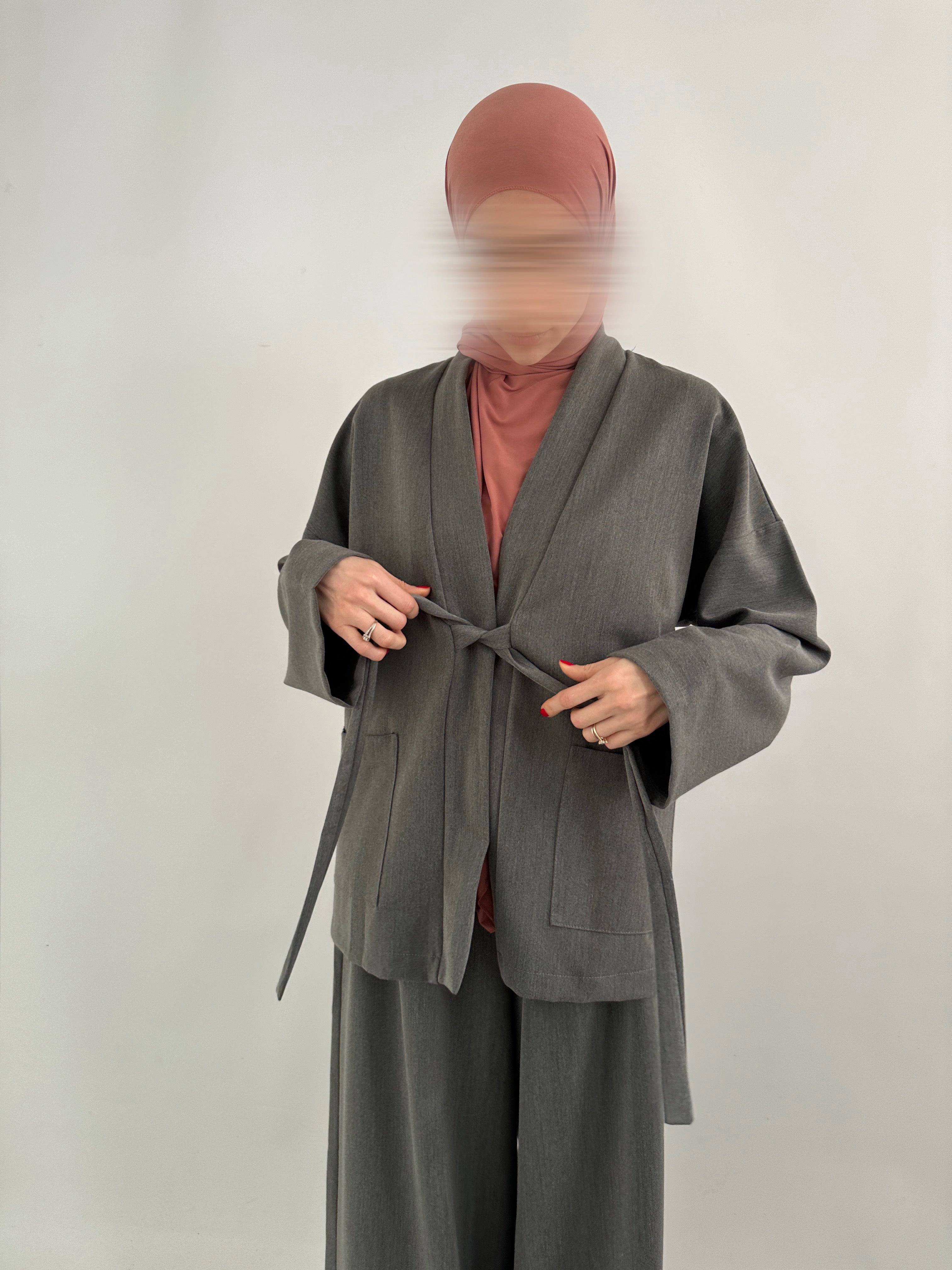 Craquez pour cet ensemble kimono et pantalon gris, à la fois chic et confortable, idéal pour un look élégant et décontracté. Le kimono est confectionné dans un tissu fluide et léger, offrant une coupe ample et moderne, parfaite pour toutes les morphologies. Son style minimaliste en fait une pièce polyvalente, facile à assortir pour toutes vos sorties, du quotidien aux occasions spéciales.