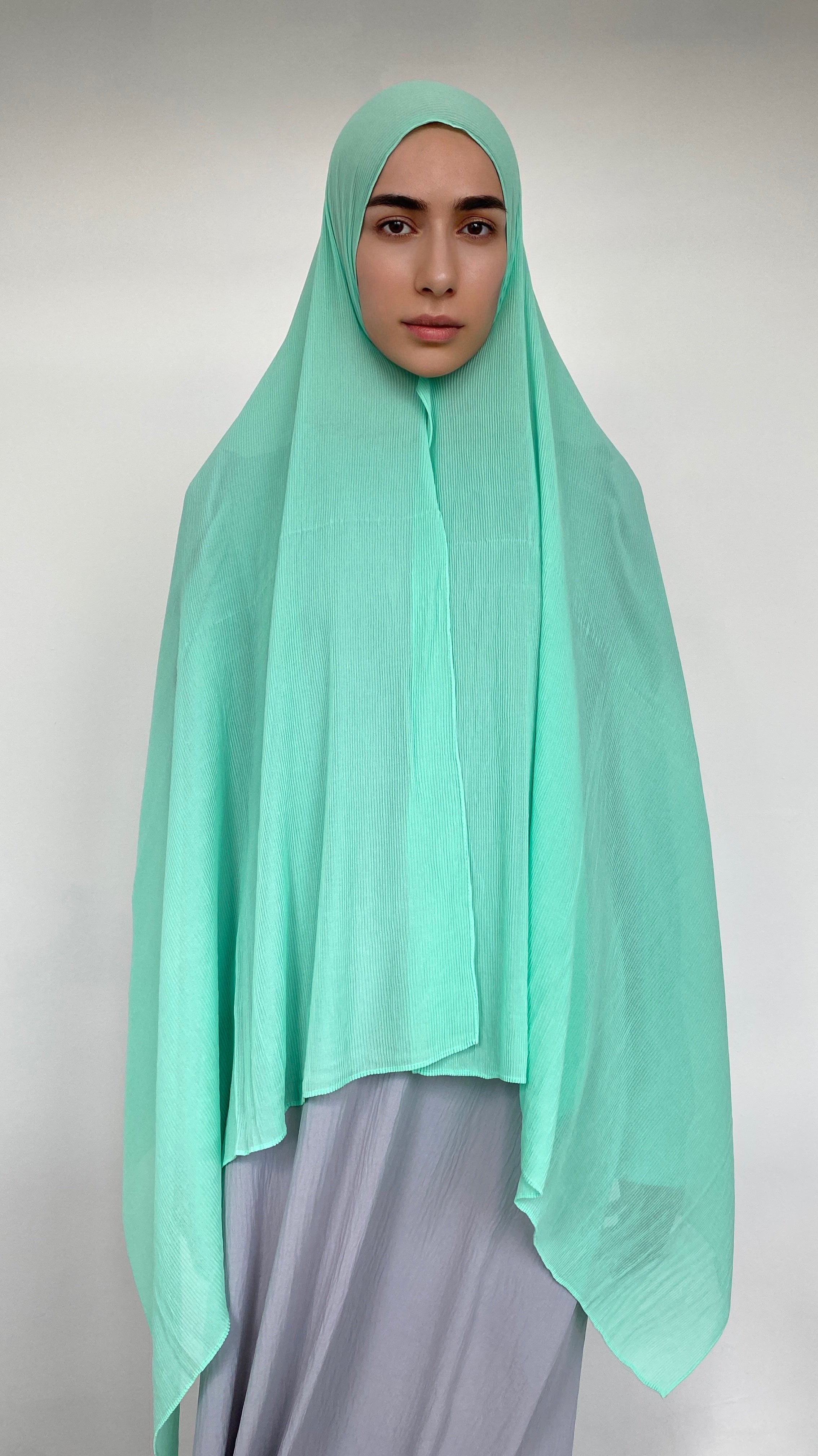 Ce hijab est en Mousseline mais dans un style unique : il est finement côtelé/plissé.