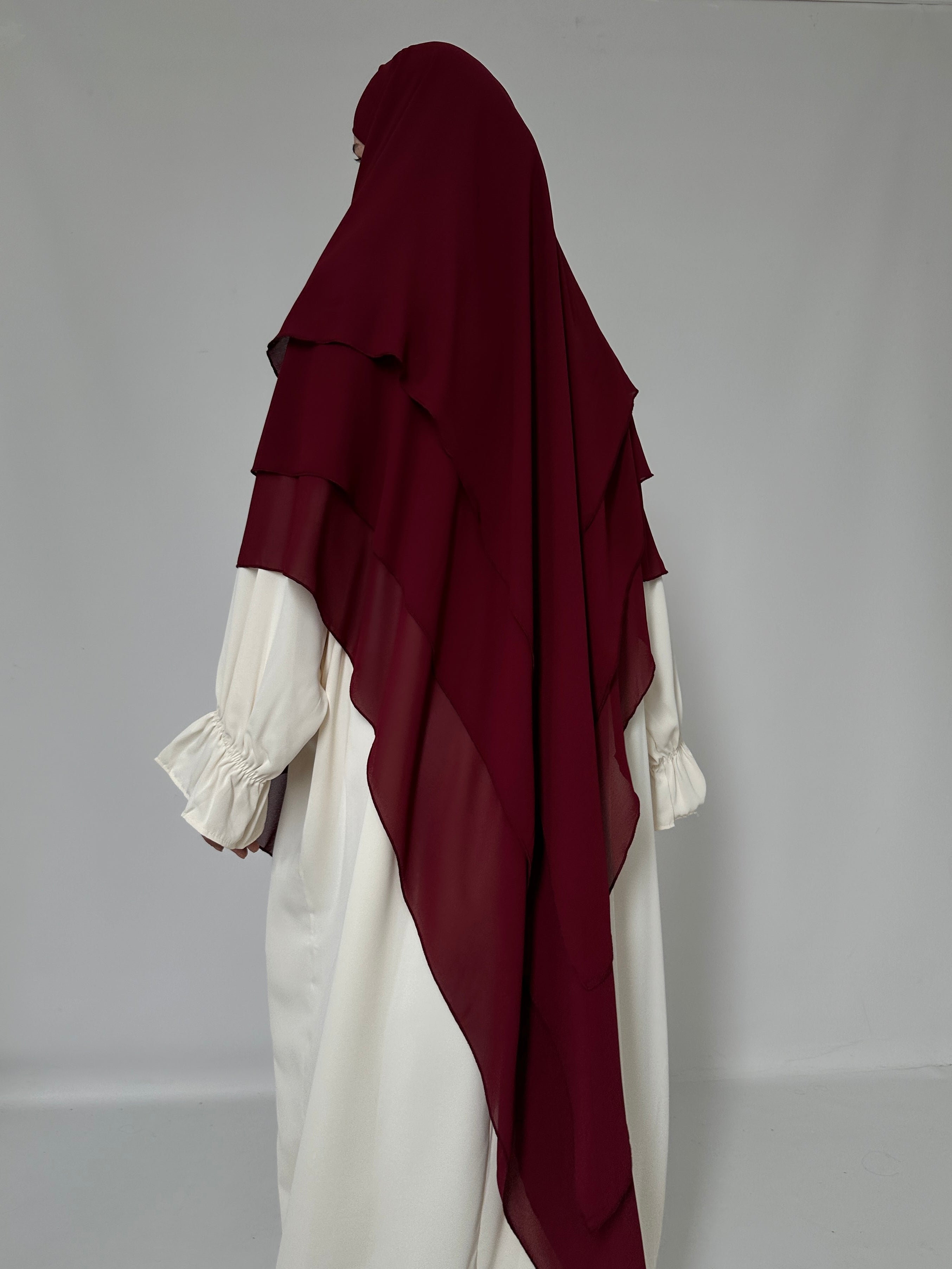 KHIMAR TROIS VOILES EN MOUSSELINE BORDEAUX