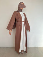 Ce kimono de style Dubai est une pièce unique et élégante. Fabriqué à partir d'un tissu de haute qualité, il offre un look sophistiqué et un confort optimal. Le kimono est richement décoré avec des motifs floraux en strass luxuriants. La longueur jusqu'au sol ajoute une touche d'élégance.