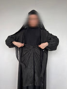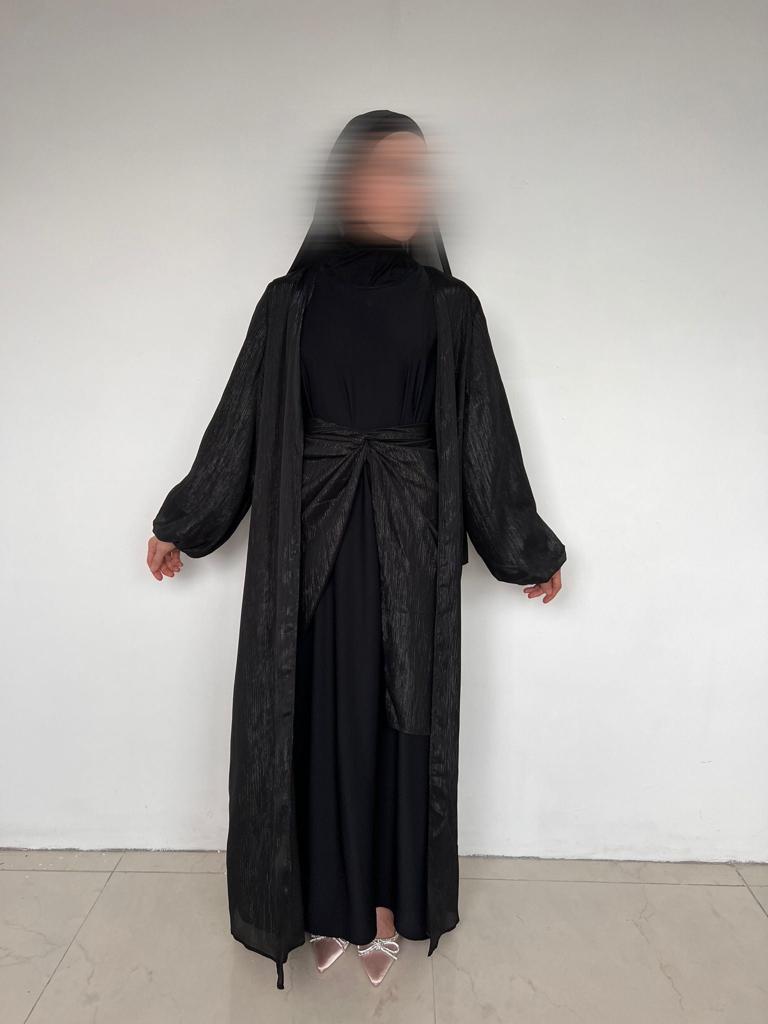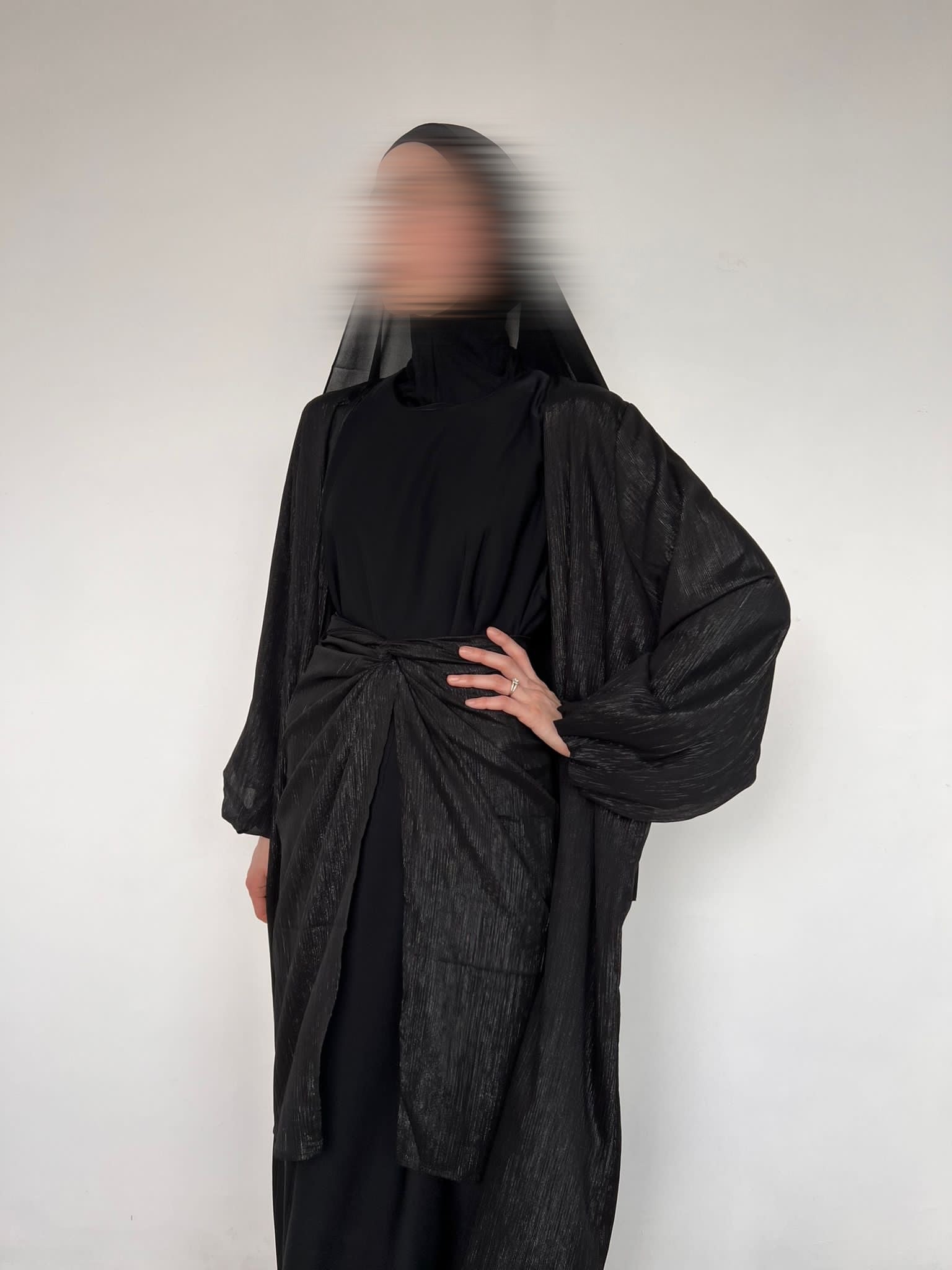 Découvrez notre ensemble kimono et tablier à nouer, un mélange parfait de confort et de style. Confectionné en 100 % polyester, cet ensemble est idéal pour les occasions décontractées ou les sorties spéciales. Le kimono fluide, associé à un tablier à nouer, vous permet de créer un look élégant et modeste tout en mettant en valeur votre silhouette.